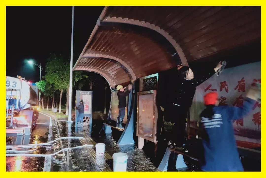 亥时的公交站台上,有这样一群辛勤的劳动者,他们有的用抹布擦拭浮尘、涂鸦,有的用铲子清除广告牛皮癣,有的用工具更换站牌内的宣传海报……他们顶寒风,淋冻雨,累得腰酸了、背痛了,没有一个人喊累,没有一个人叫苦。在这里,公交人顽强拼博的精神得到了进一步升华;在这里,公交人为民服务的宗旨得到了进一步弘扬……