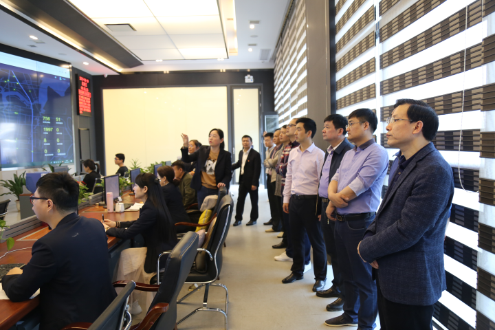 图为引领一众视察调研路车智能化任务调度系统及租售车政府部门系统化电商平台正常运作实际情况